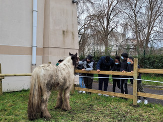 Enfin, ce mercredi 16 février, une grande journée de réflexion autour de 3 ODD (objectifs de développement durable), choisis précédemment par les élèves, a permis de poser les bases de nombreux projets à venir. 17 éco délégués, Mme LEPRON, M. CHIKHI (professeur de PSE) et Mme SILLIERES se sont donc rendus à la Ferme de Possibles de Stains. Un lieu tout à fait adapté puisque cette ferme urbaine d’1,2 hectare a pour objectif d'allier développement économique local, développement durable et insertion professionnelle.